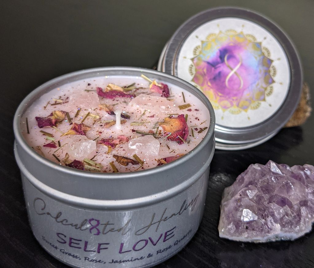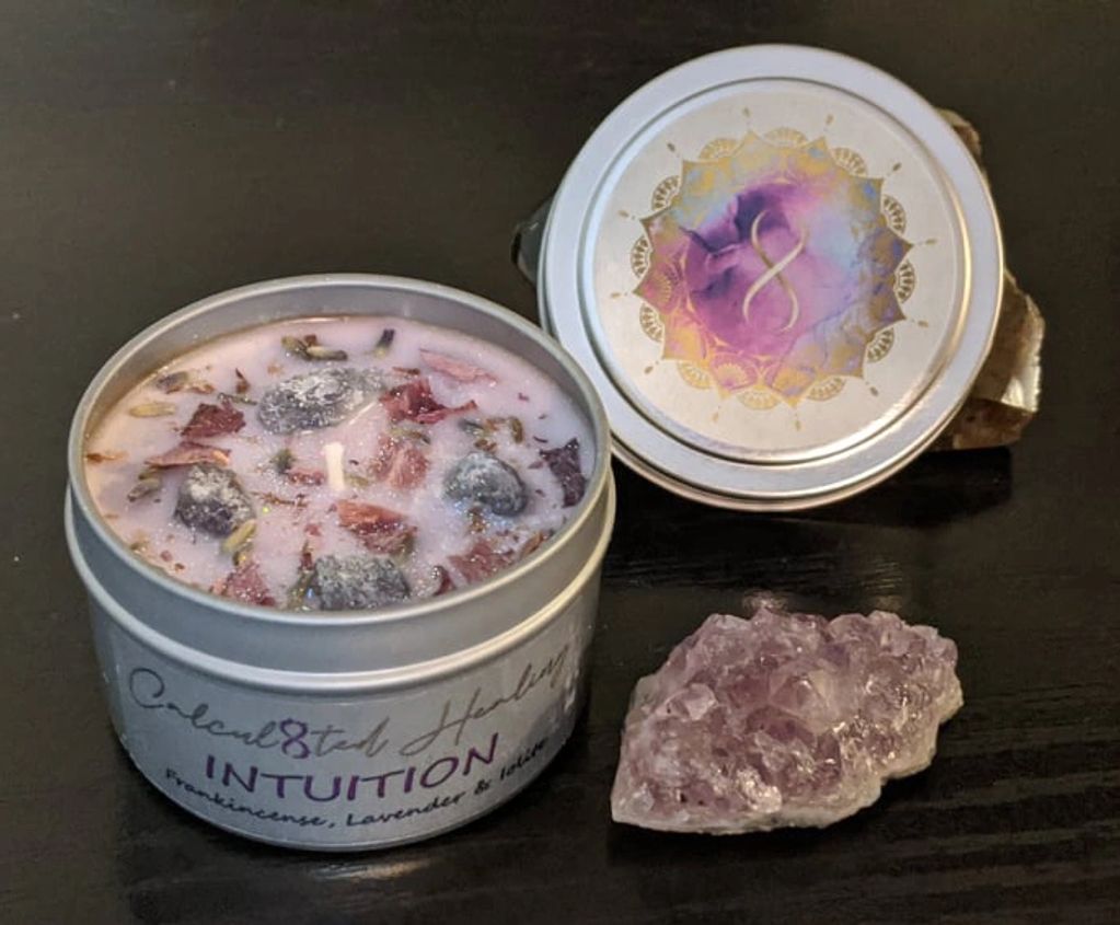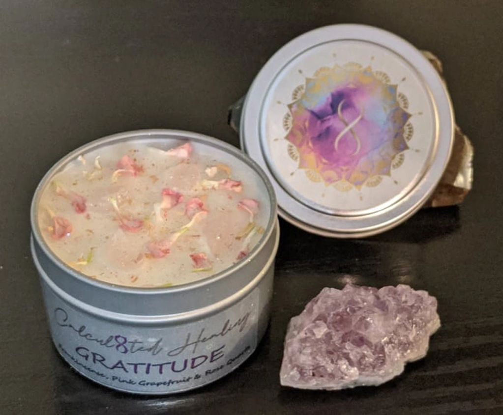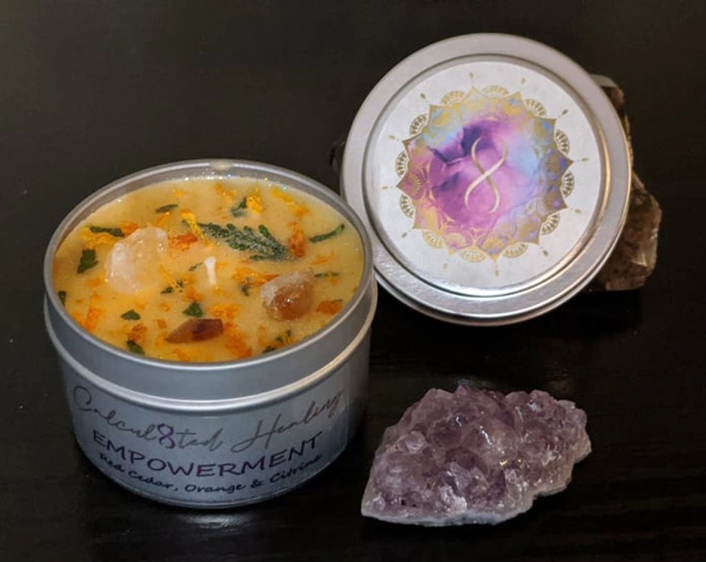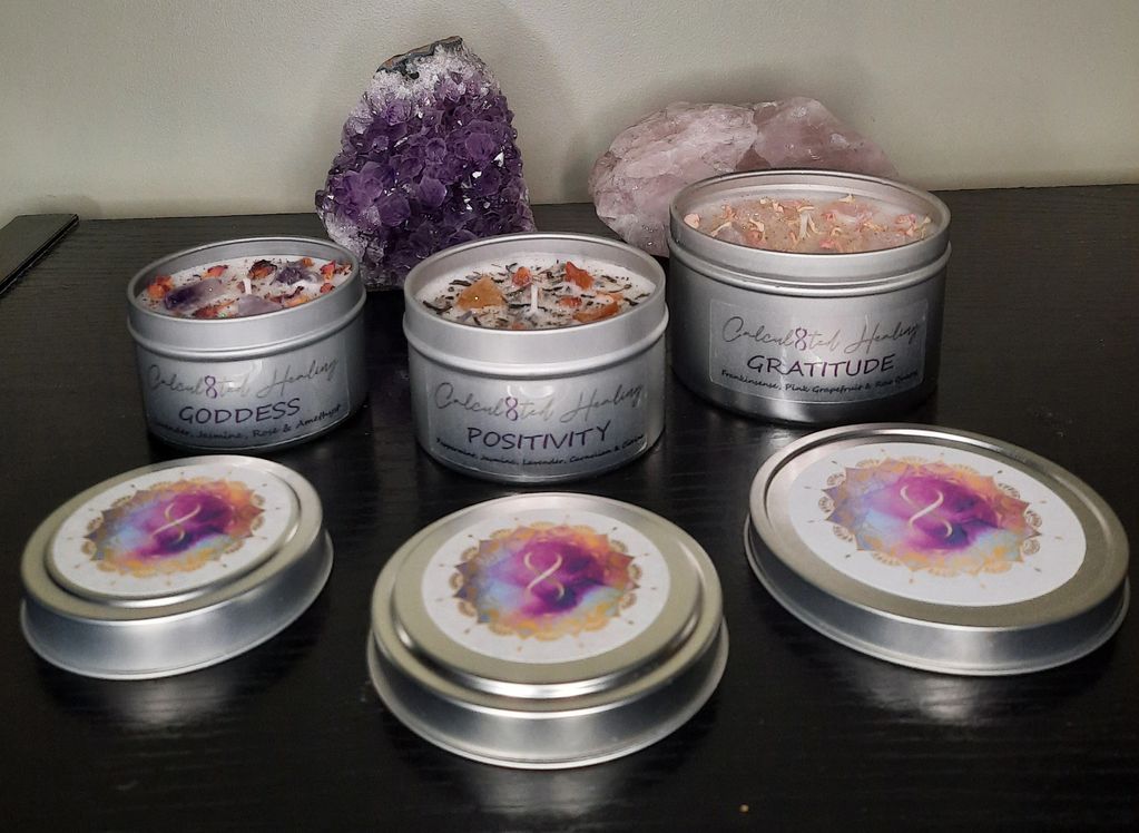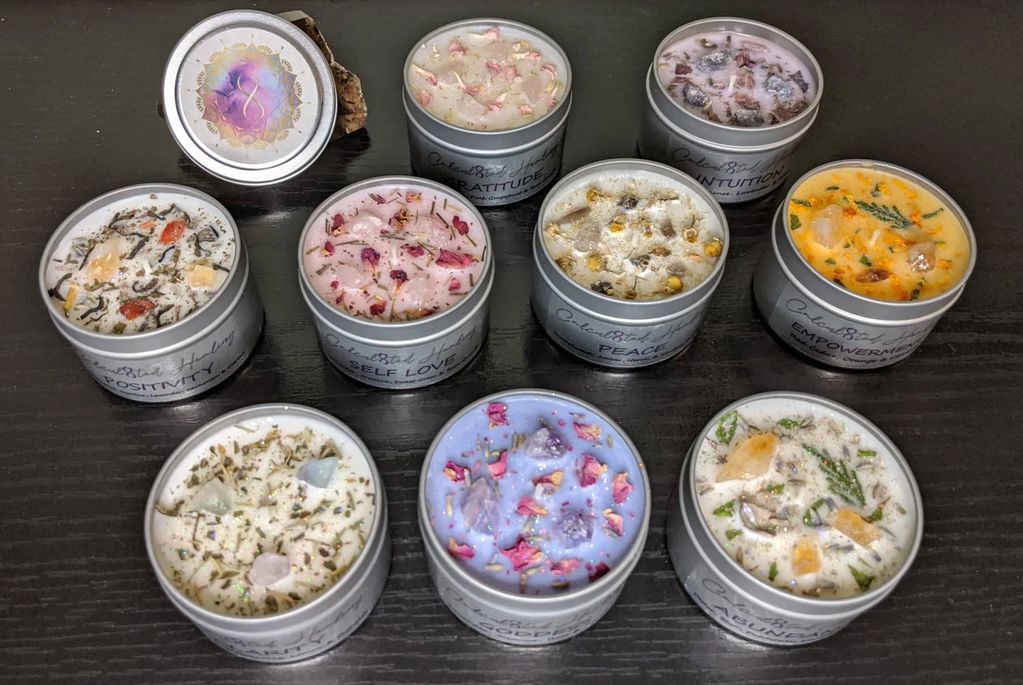 Every Healing Intention Candle, and Intention Roller, is individually handcrafted and made on each Full Moon of the month, for maximum energy enhancement. I use 100% natural soy wax and coconut oil, crystals, herbs, florals, plant medicines, and the highest quality non toxic fragrance oils. Each ingredient has been thoughtfully chosen for the intended intention of each candle and infused with Reiki energy to uplift, inspire, and provide love, light, and healing energy.